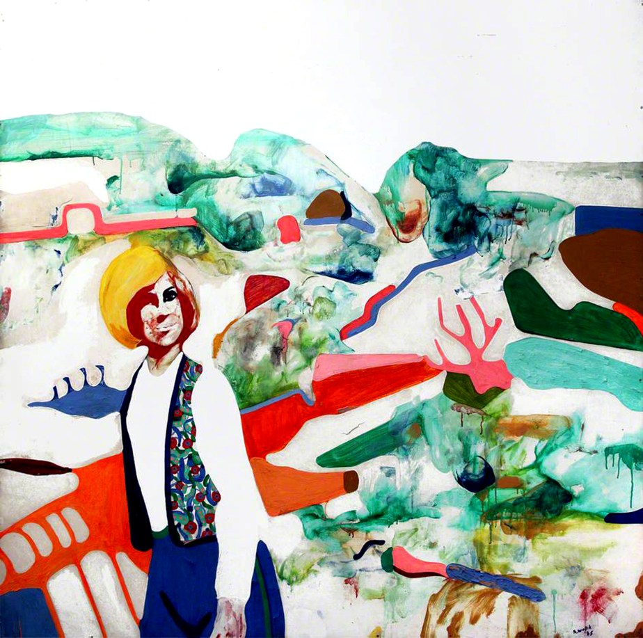 Notes: Materials/media likely to be oil and household paint on Masonite hardboard, dimensions in the region of 92 x 92 cm, as similar paintings of the same era were. See Additional for a note regarding this work, and how it might relate to another painting of the same period – Landscape with Walking Figure.