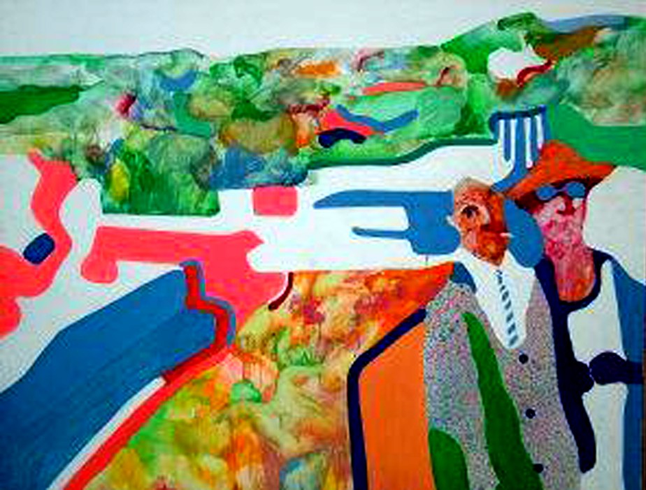 Oil, household paint on Masonite hardboard.